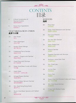 A collection of recipes synonymous with the cooking of the Straits Chinese, descendants of early Chinese settlers, who intermarried with the host community on the Malay Peninsula. Their fusion cooking, combining Chinese, Indian, Malay and Thai influences reflects their own mixed heritage. The book is bilingual in Chinese and English. 120 pages. For further details, please see the scanned contents page.